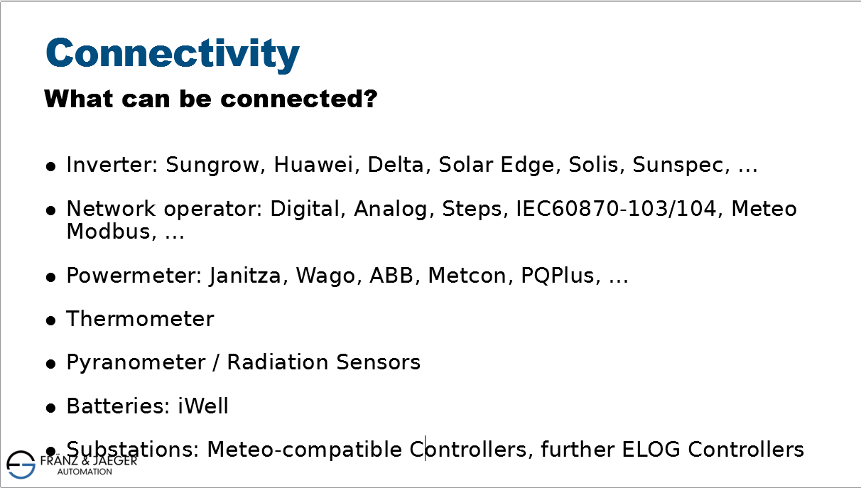 The Fränz&Jaeger PPC (1) for connection of energy generation plants like photovoltaics, biogas or wind turbines is now available with eLOGControl in newest version 3.0!